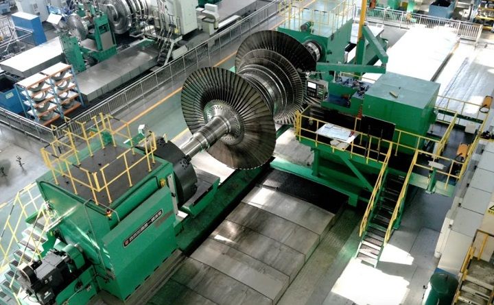 此外,汽轮机转子尺寸及精度要求极其严格,尤其是工件跳动精度的稳定性,直接影响汽轮机转子的可靠性。为攻破这一难题,研发人员从利用虚拟机床技术模拟分析齿圈受力状态、改进主轴支撑结构,到优化加工工艺、严格把控基础零件精度、创新装配工艺,最终实现了现场实测机床主轴端径跳0.005mm,完全满足转子加工需求。本产品同样适用于重型轴类及其它回转类零件,如大型电机轴、发电机轴、电机转子等零件的外圆面、圆锥面、端面、切槽、螺纹及回转曲面的车削加工。